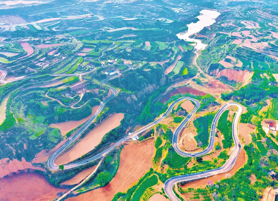"原标题:平陆县:持续深化“四好农村路”建设4月14日拍摄的平陆县圣人涧镇太宽至南吕的乡村公路蜿蜒于山间,美景如画。" 山西运城平陆县持续深化“四好农村路”建设